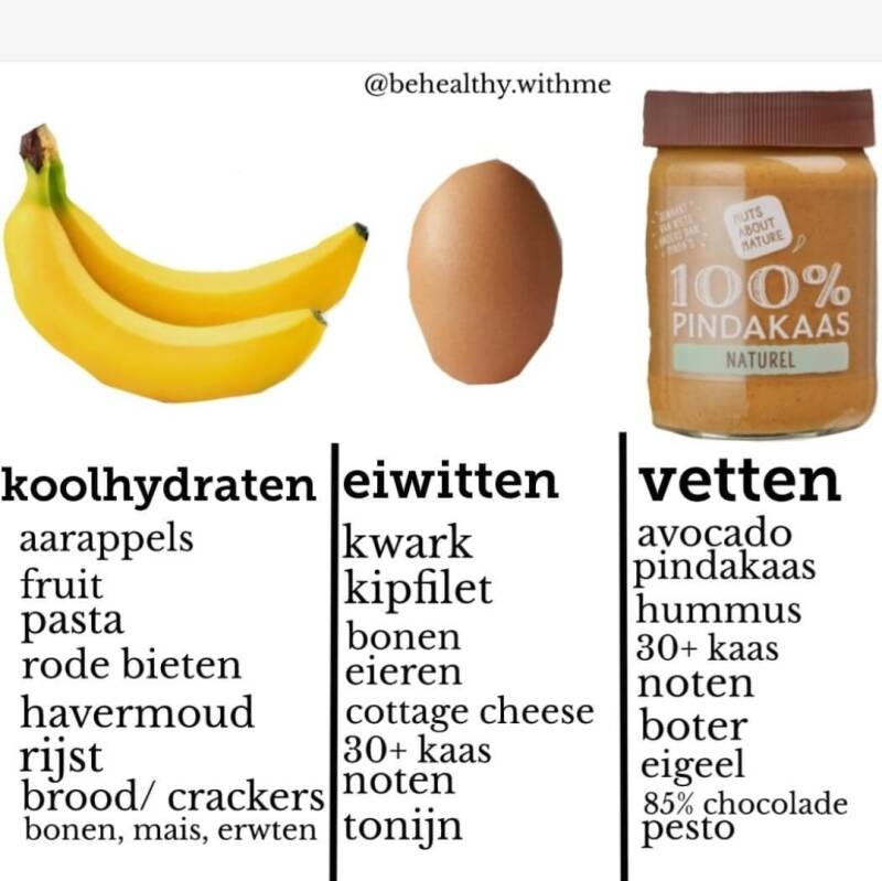 Hiernaast zie je een handig lijstje staan van welke voedingsstof in welk product zit. Zo kun je goed inzien wat je eet. 🍌